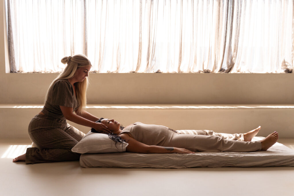 Een sessie begint altijd met een korte check-in: hoe voel je je, wat speelt er op dit moment? Daarna leg ik uit wat je kan verwachten en begeleid ik je stap voor stap in een verbonden ademhaling. Jij ligt comfortabel op een heerlijk matras, met een deken en een oogmasker en ik ben de hele tijd bij je.